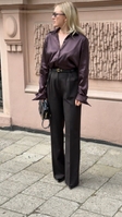 Вишукана блуза вільного крою шоколадного кольору з цікавим манжетом на рукавах